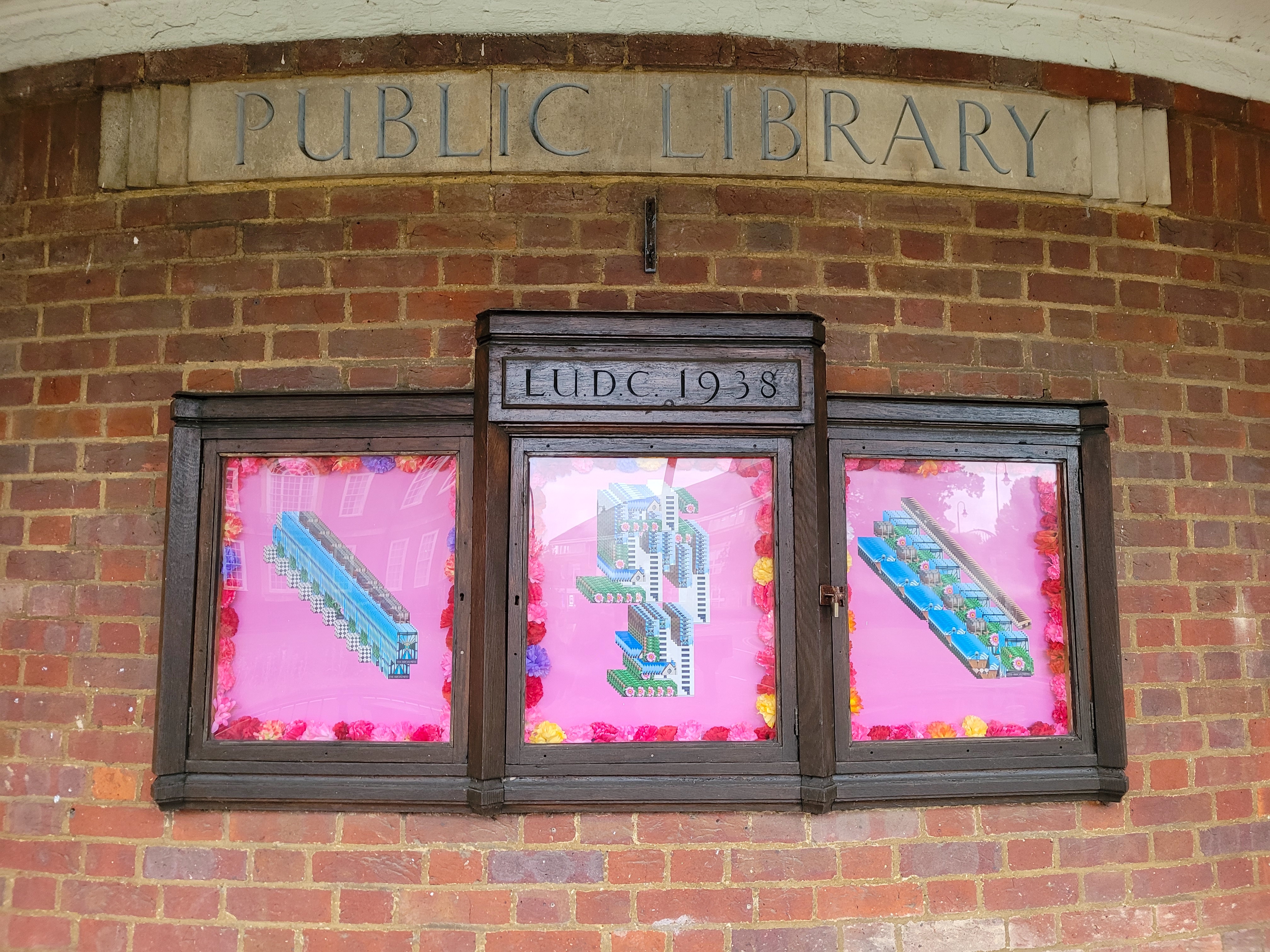(Part of Artwalks coinciding with Letchworth Festival (June 2024). Artwalks is an art trail/group exhibition using public spaces around Letchworth’s town centre throughout June 2024.)This work responds to Letchworth as the first Garden City in the world. Using my photographic documentation of the town, I created digital collages that explore architectonic forms through the repetition of images. I also incorporated a selection of artificial flowers, purchased from a local shop into the installation.