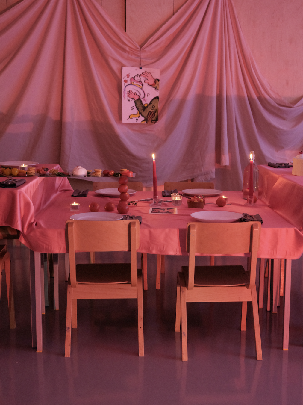 Through the shared act of dining-and by using the architecture of the dining table to foster dialogue and community, Who's Hungry? transforms the meal into a participatory artwork. The line between collaborators and participants dissolves, allowing everyone to contribute to a shared ritual and collective experience.